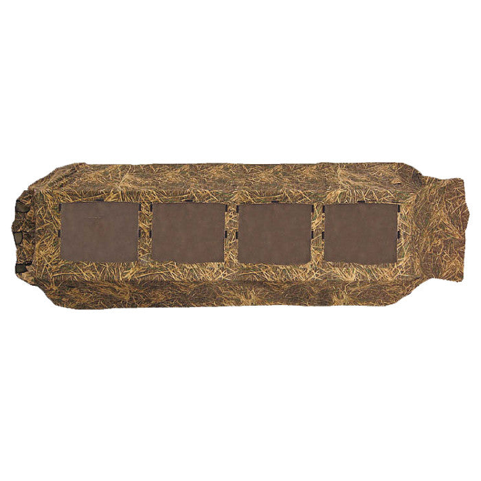 Beavertail full-size Boat Blinds are designed not only for exceptional concealment, but with superior functionality. These blinds attach to your boat with our exclusive telescoping frame system, which means no holes to drill, and attachment / detachment is a snap. All blinds provide more than enough clearance for everyone in the boat, no matter where you are seated. These blinds are designed to work with both backwater motors and standard outboards. Our boat blinds also lay directly on the side rail which means unobstructed access to gun boxes and accessories. By exchanging the blind arms for ground stakes, this is the only blind in the industry that can go from the boat to the field in 5 minutes.