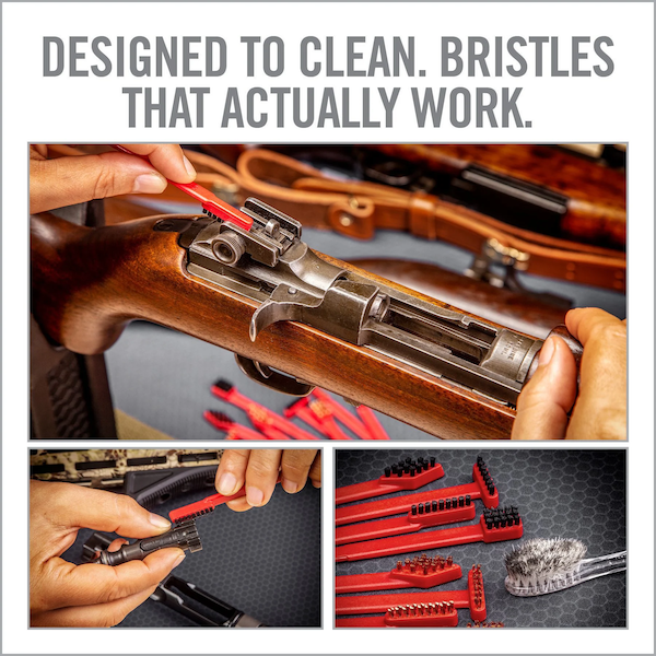 Designed from the ground up to do a better and faster job of cleaning guns. Micro Bristles stay rigid under pressure providing superior scrubbing power. Four unique brush shapes with integrated scrapers are designed to specifically clean hard-to reach interior and exterior surfaces where carbon and gunk accumulate.