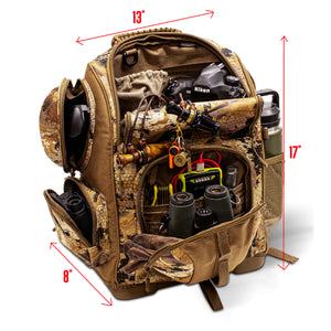 Finally there's a backpack with the quality and durability of a deluxe backcountry pack with all the features needed to sling mud in the duck marsh. This bag features full foam floatation throughout, deluxe molded EVA bottom, built-in sunglasses case, integrated unique paracord handle, thermos holder, side and front handles with daisy chain for attaching Rig'Em Right® Decoy Anchor Clips, padded airfoam backrest and shoulder straps and a large internal compartment for carrying lots of gear. Additionally, this backpack has an internal pocket for laptop or tablet, enabling it to double as a travel bag. This is truly the ultimate waterfowlers backpack. Available in Optifade Marsh or Optifade Timber.
